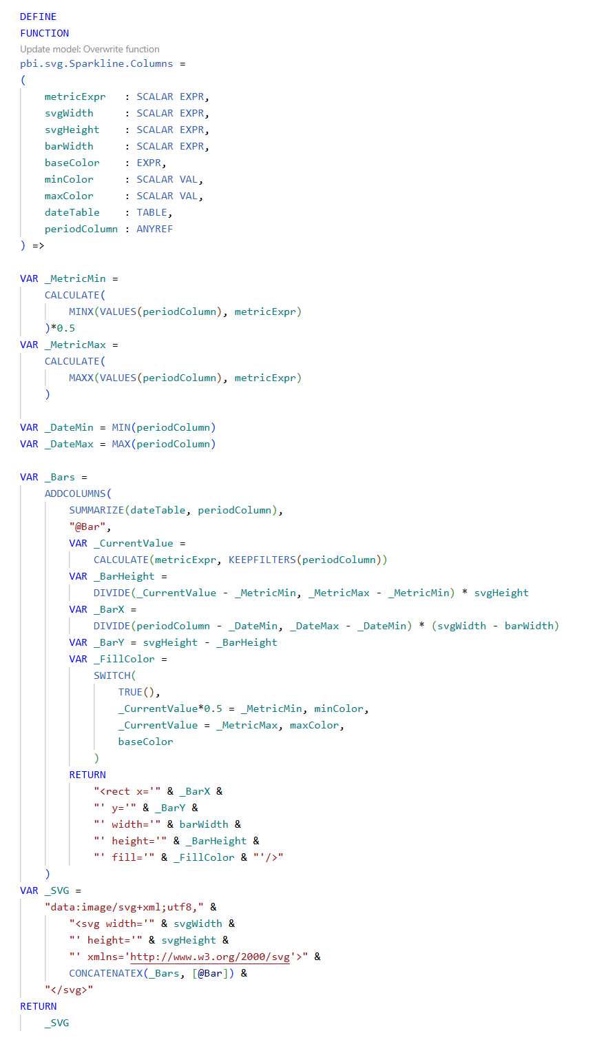 SVGs and UDFs are a match made in heaven. Why? Because SVG code is often really long, and now you can create a UDF library with different SVG templates that you (and your colleagues) can reuse across all your reports.