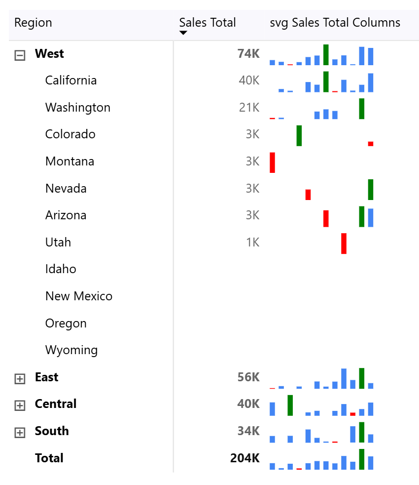 Say you have sales by different regions and states, and you want to show values above 1,000 in "K", values above a million in "M", etc.