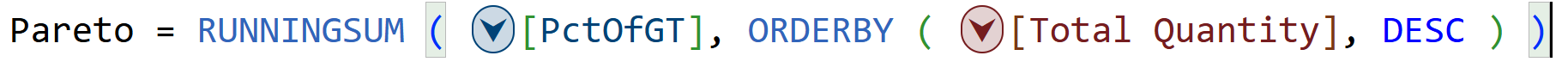 - Pareto (cumulative % of quantity
