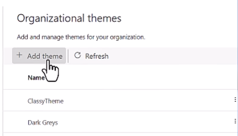 2. Open Organizational Themes (Preview) and Click on + Add theme.